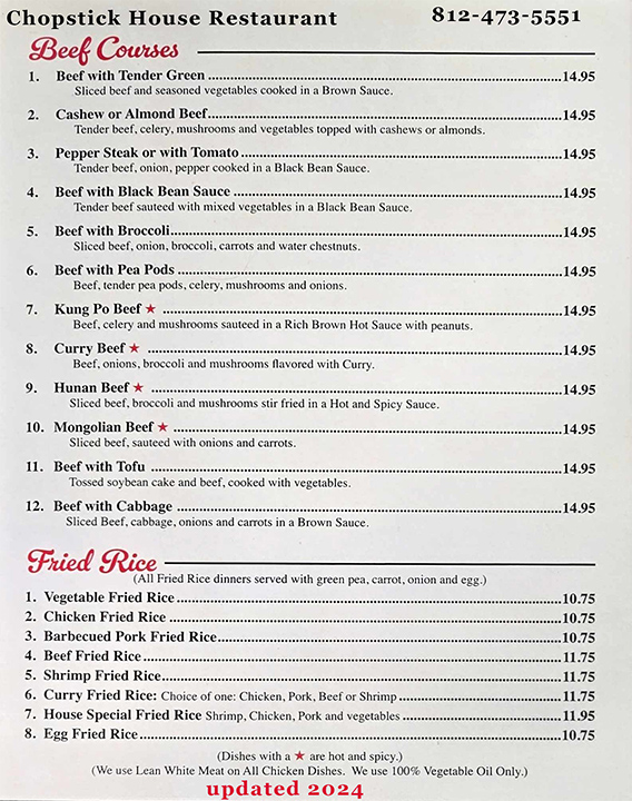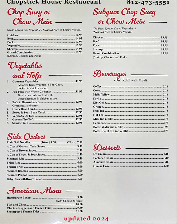 Introducing Chopstick House Restaurant, where delightful flavors and warm hospitality await you! Nestled at 5412 E Indiana St in Evansville, this family-friendly establishment has garnered rave reviews from loyal patrons who cherish its extensive menu and cozy atmosphere. Guests rave about the generous portions, highlighted by the Family Meal Combos and popular Curry Chicken served with homemade sides like Crab Ragoons—made with real crab and paired with a unique pineapple dipping sauce.